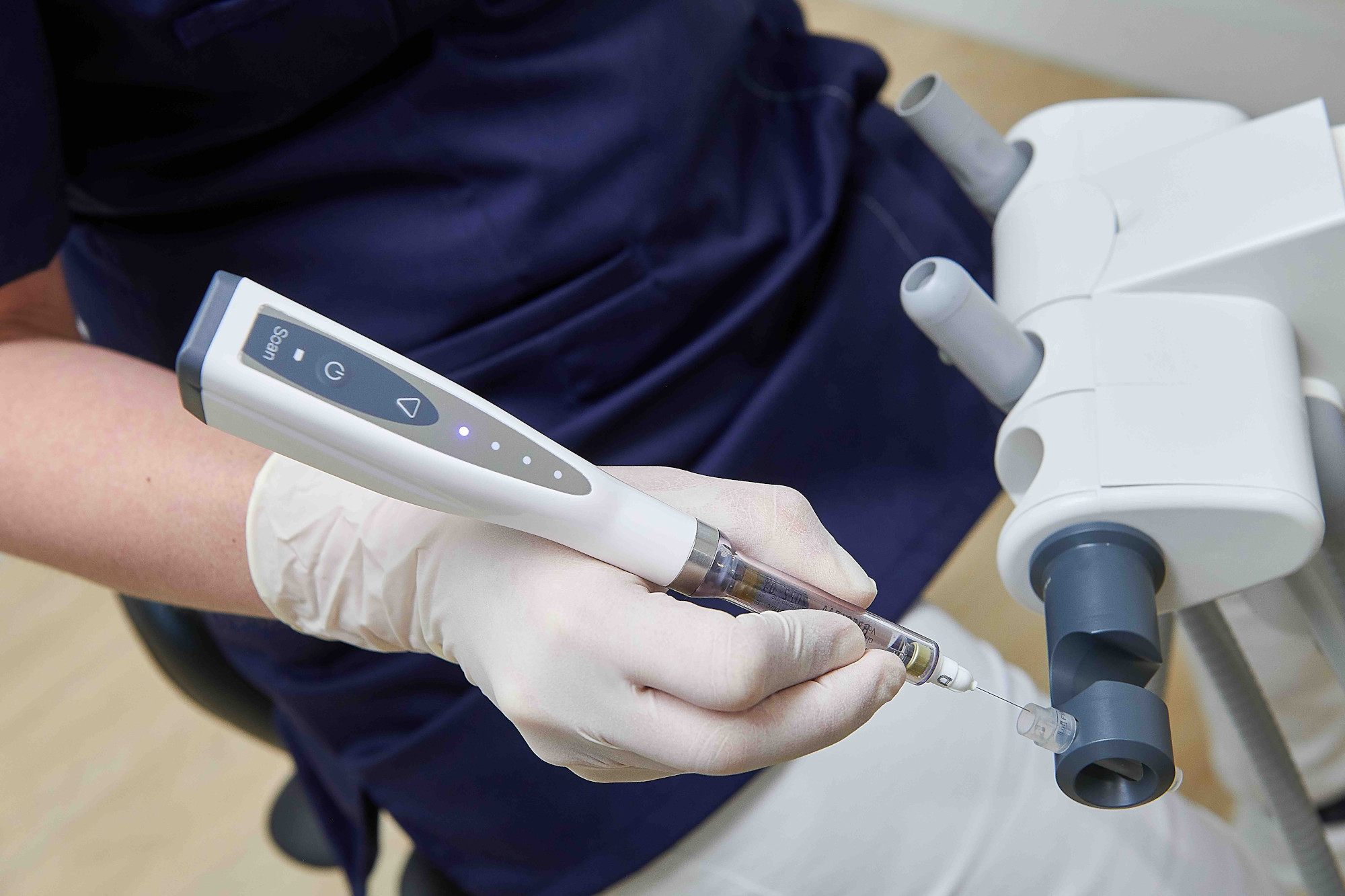 • Soan 可以即時偵測壓力調整注射速度,搭配 Pen Grip + 腳踏開關控制,讓打PDL變得更好操作。